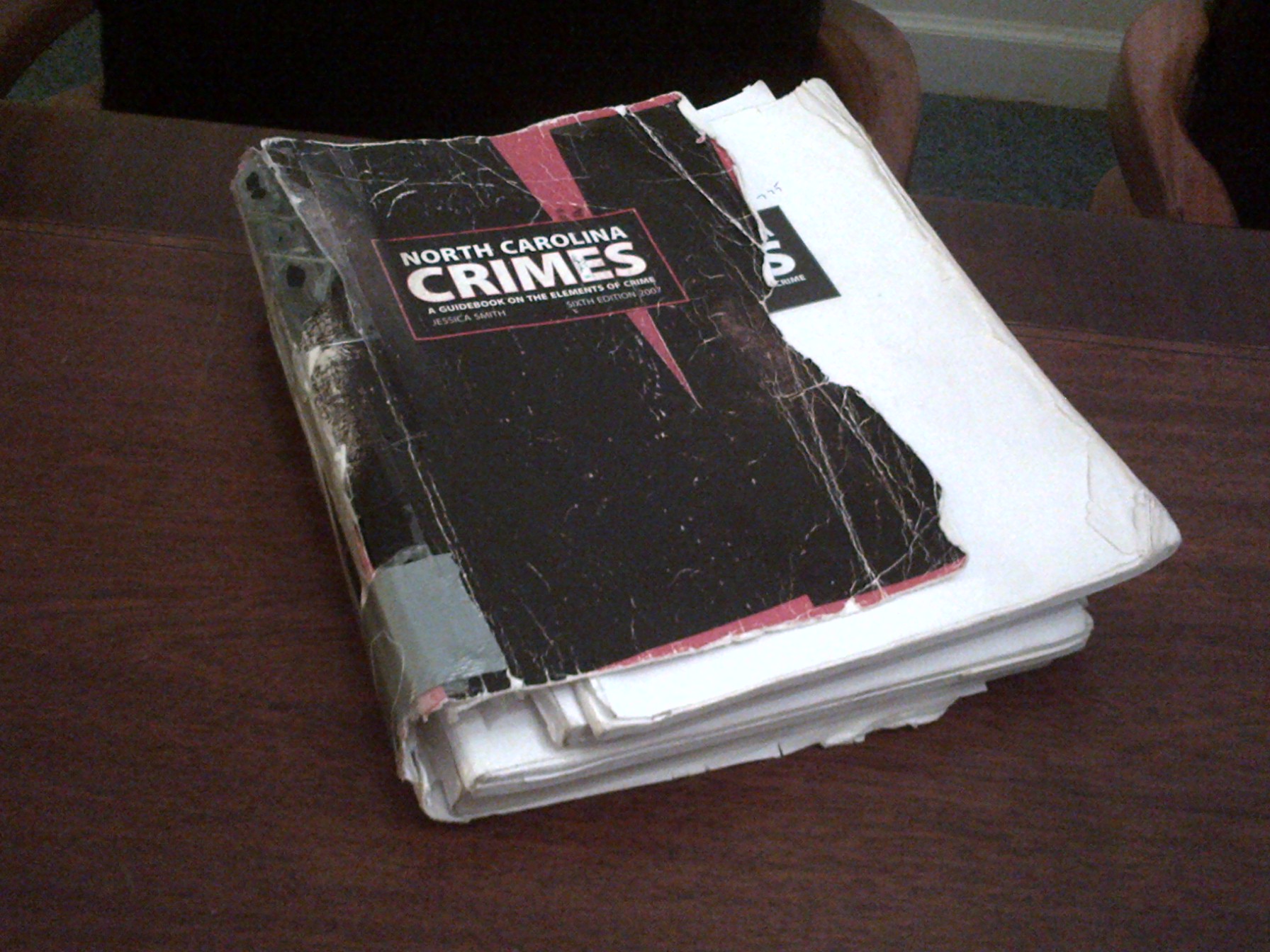 In Chapel Hill, the start of the John Edwards trial is big news. The News and Observer covers the beginning of jury selection here, and has an interesting story on Edwards’ increasingly isolated existence here. The only story that may be making a bigger splash is Jessie Smith’s contest, It’s a Crime What I Did to My NC Crimes, which offers a free copy of the new edition to the person who provides the most appalling photographic evidence of heinous abuse of the previous edition. Waive your right against self-incrimination and enter the contest here. It ends today, so don’t dither. And you need to do better than this, which looks to me to be among the most promising contenders (though I am not a judge):