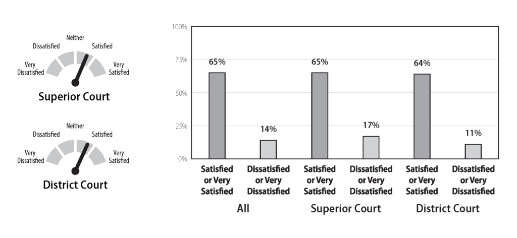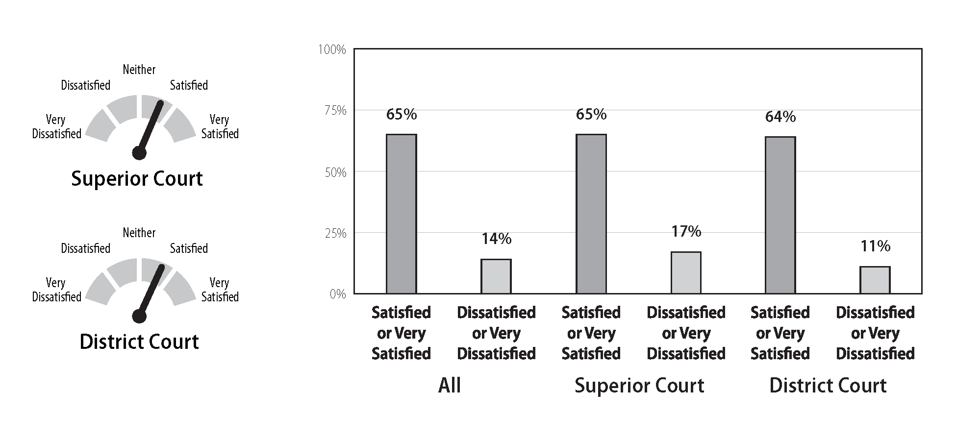 Overall level of satisfaction. Trial judges were asked their overall level of satisfaction with IDS’s administration of indigent representation. In noncapital cases, 65% responded that they were satisfied or very satisfied, 14% responded that they were dissatisfied or very dissatisfied, and the average was closer to satisfied than to neither satisfied nor dissatisfied. See Report at p. 15. The “dial” chart and bar graph from the Report illustrate this result.