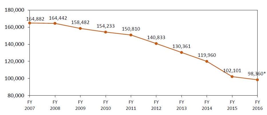 - Finally, the total number of misdemeanor sentencing episodes dipped below 100,000. Check out the 10-year trend on misdemeanor convictions.