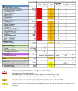 This table is a draft of something that will appear in a larger work on criminal monetary obligations, so I would appreciate any feedback on how it could be improved. Thank you.