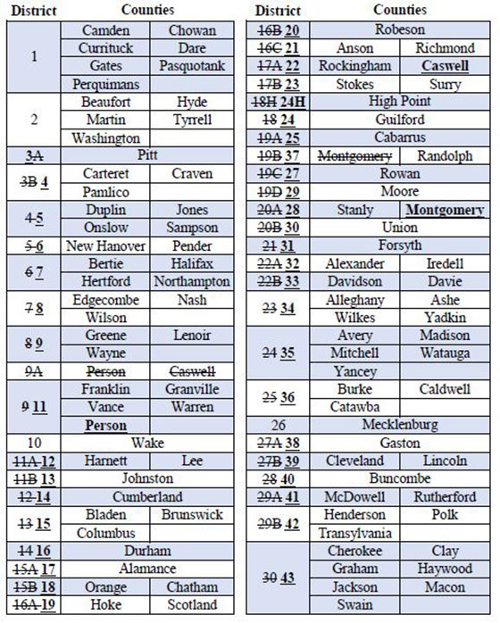 2019 won’t be the only new number you’ll need to adjust to come January 1. On that date, most of North Carolina’s prosecutorial districts also will have new numbers. Several of them will also have newly elected district attorneys.