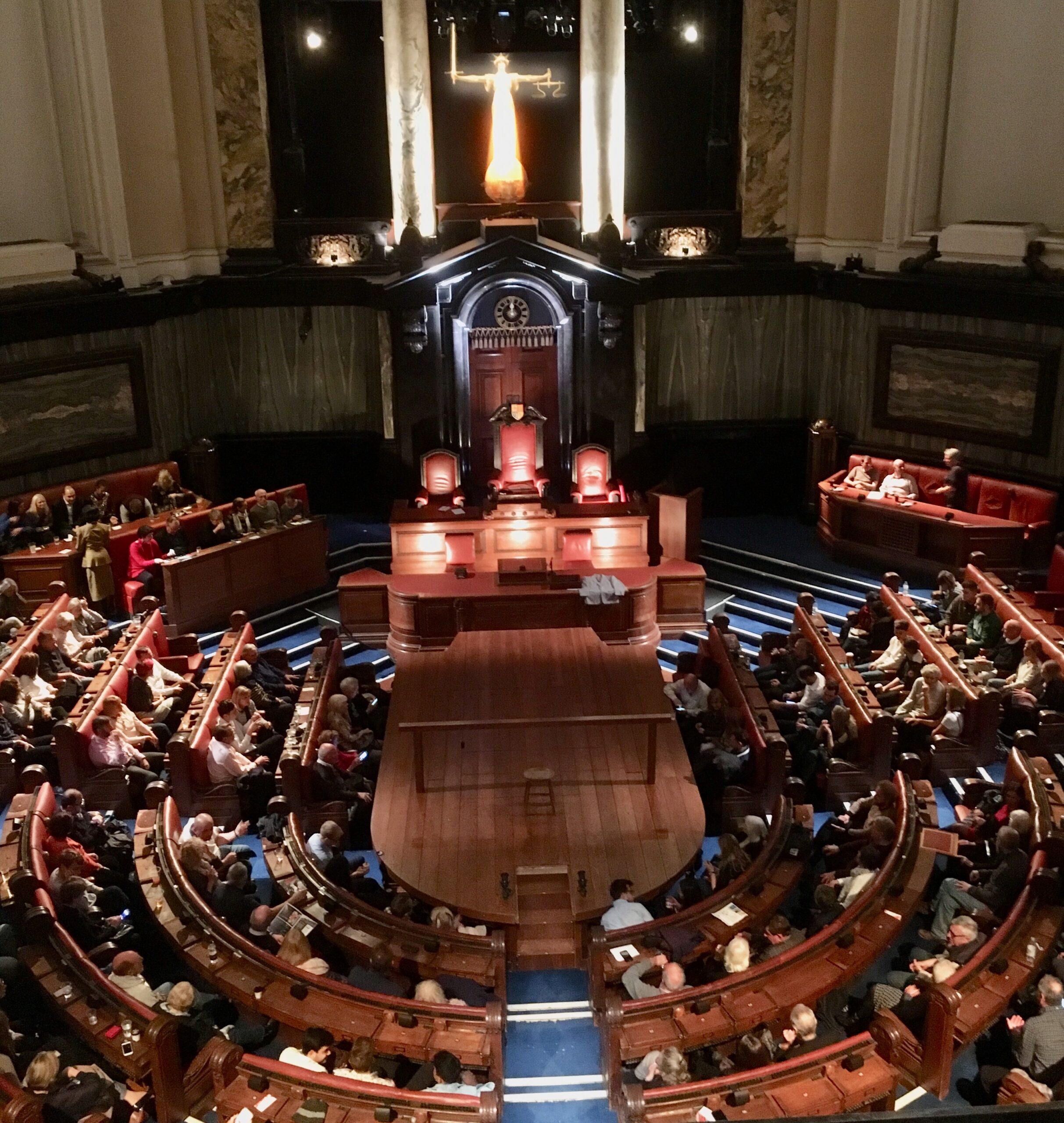 Due to the synergy of the study abroad program, our criminal justice class was able to take advantage of another opportunity: joining the theater class for a performance of Agatha Christie’s masterful Witness for the Prosecution. The play, staged at London’s incomparable County Hall (pictured), had several twists and turns, which I won’t give away, plus some stirring courtroom scenes, including some dramatic cross examination.