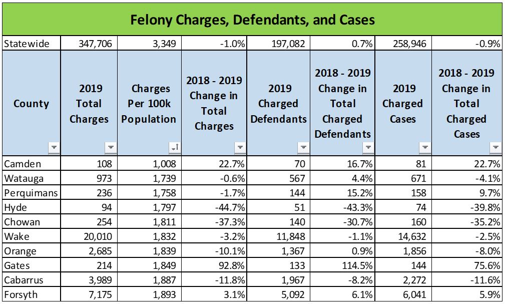 Table 2. Ten counties with the lowest rate of charging—felonies only—per 100,000 population