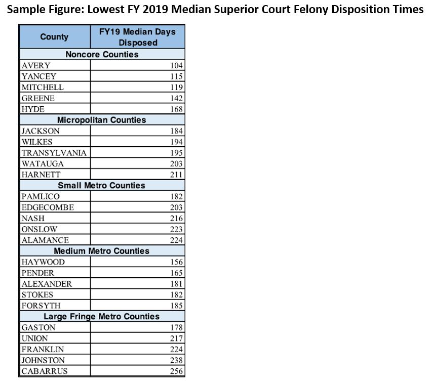 The NC AOC recently released FY 2019-2020 case processing data. We already are working to update our report with that new data. We welcome your feedback on how we can make this information more accessible and useful to stakeholders.
