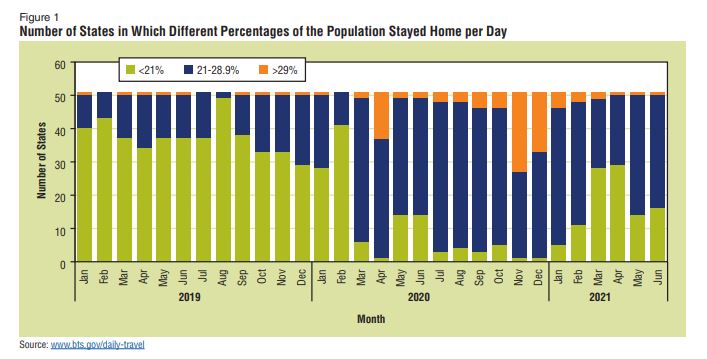 In addition, self-reported survey data suggested that 7.6 percent of adults were more likely to drive while impaired during the pandemic than before, and wholesale alcoholic beverage sales (an indirect measure of highway safety risk) were higher in 2021 than 2019 and 2020. Continuation of Research at 8.