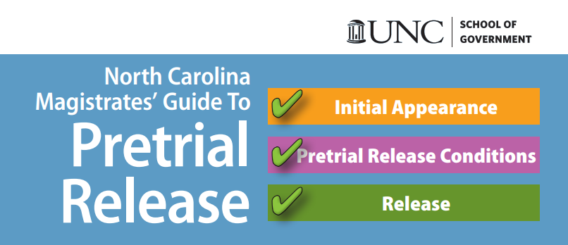 The School of Government has published a new resource on initial appearances and pretrial release. Although any judicial official is authorized to preside at an initial appearance, in most cases that official is a magistrate. This guide addresses pretrial release only in the context of magistrates’ authority and limitations.