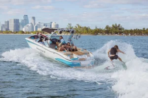 The act defines wake surfing as “operating a motorboat with weight added in the stern via water-filled tanks or other ballasts for the purpose of creating an artificially enlarged wake that is or is intended to be surfed by another person towed behind the boat.” A violation of this local restriction is a Class 1 misdemeanor and carries a minimum fine of one hundred dollars ($100.00), in addition to any other applicable penalties.