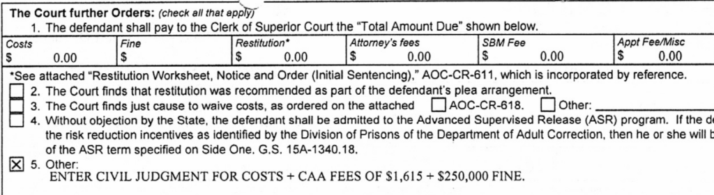 That’s the rule from State v. Santana, ___ N.C. App. ___ (2025), which I summarized earlier in the week. To recap, the defendant in Santana was convicted of drug trafficking and other offenses and ordered to pay a $250,000 fine. As is often the case for defendants sentenced to active time, the trial court ordered the fine and other costs as a civil judgment. The defendant argued on appeal that the trial court had no authority to docket the money immediately as a civil judgment.