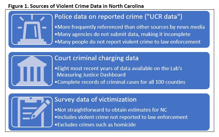 There are three main sources of crime data in North Carolina: police data, court data, and victim surveys (Figure 1).